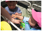 0〜1歳・・・おしりふき、ティッシュ1箱、紙おしめ、スタイ、バスタオル2枚(シーツとして使います)、ミルク、哺乳びん、(食事用エプロン)